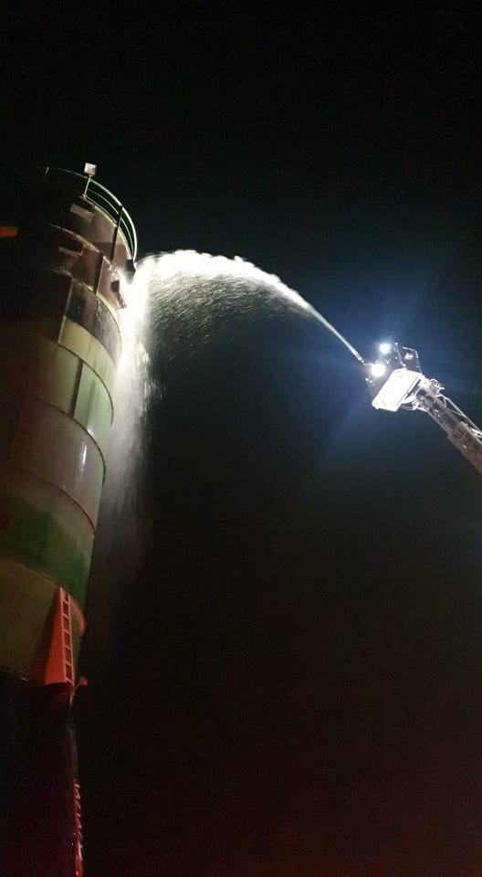 „La sosirea primelor echipaje de stingere, după ora 20.30, incendiul se manifesta violent la rumegușul din interiorul silozului și la o parte din acoperișul depozitului de cherestea, lipit de siloz.