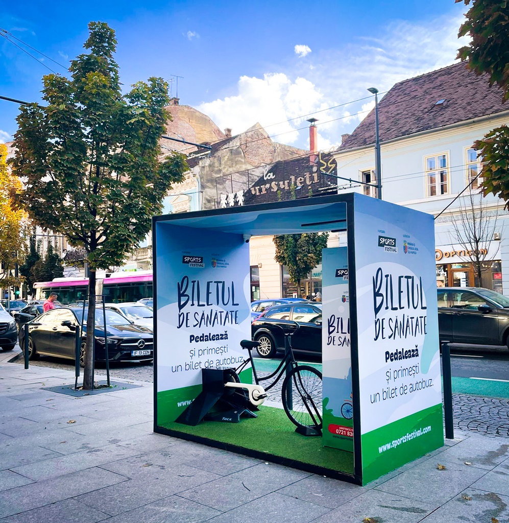 Cluj-Napoca are acum două stații de autobuz smart funcționale: stația de bicicletă Central și stația Memorandumului Sud, relansată în 20 septembrie, unde călătorii pot obține un Bilet de Sănătate în schimbul a 20 de genuflexiuni.