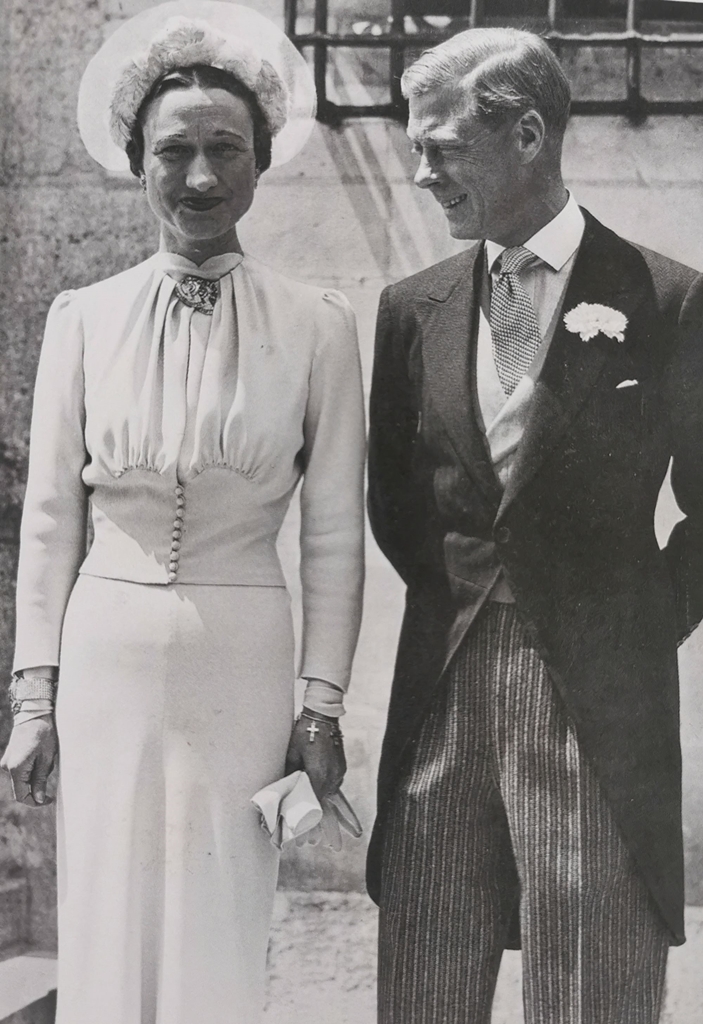 Wallis Simpson, viitoarea ducesă de Windsor, se număra printre acestea, iar celebra rochie de cununie devenită iconică, în culoarea denumită, de-atunci, Wallis Blue, a fost una dintre cele mai copiate piese din istoria modei. Mătasea crepe din care a fost confecționată a fost vopsită de-o așa manieră ca să se potrivească cu ochii lui Wallis și să se asorteze cadrului în care avea loc cununia – salonul verde pal din Chateau de Cande.