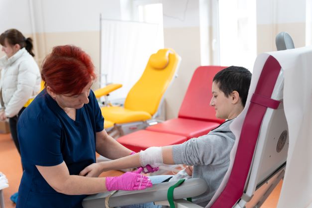 Donatorii au fost întâmpinați la Centrul Regional de Transfuzie Sanguină de studenții voluntari ai Universității Babeș-Bolyai care le-au oferit informații despre procesul de donare.