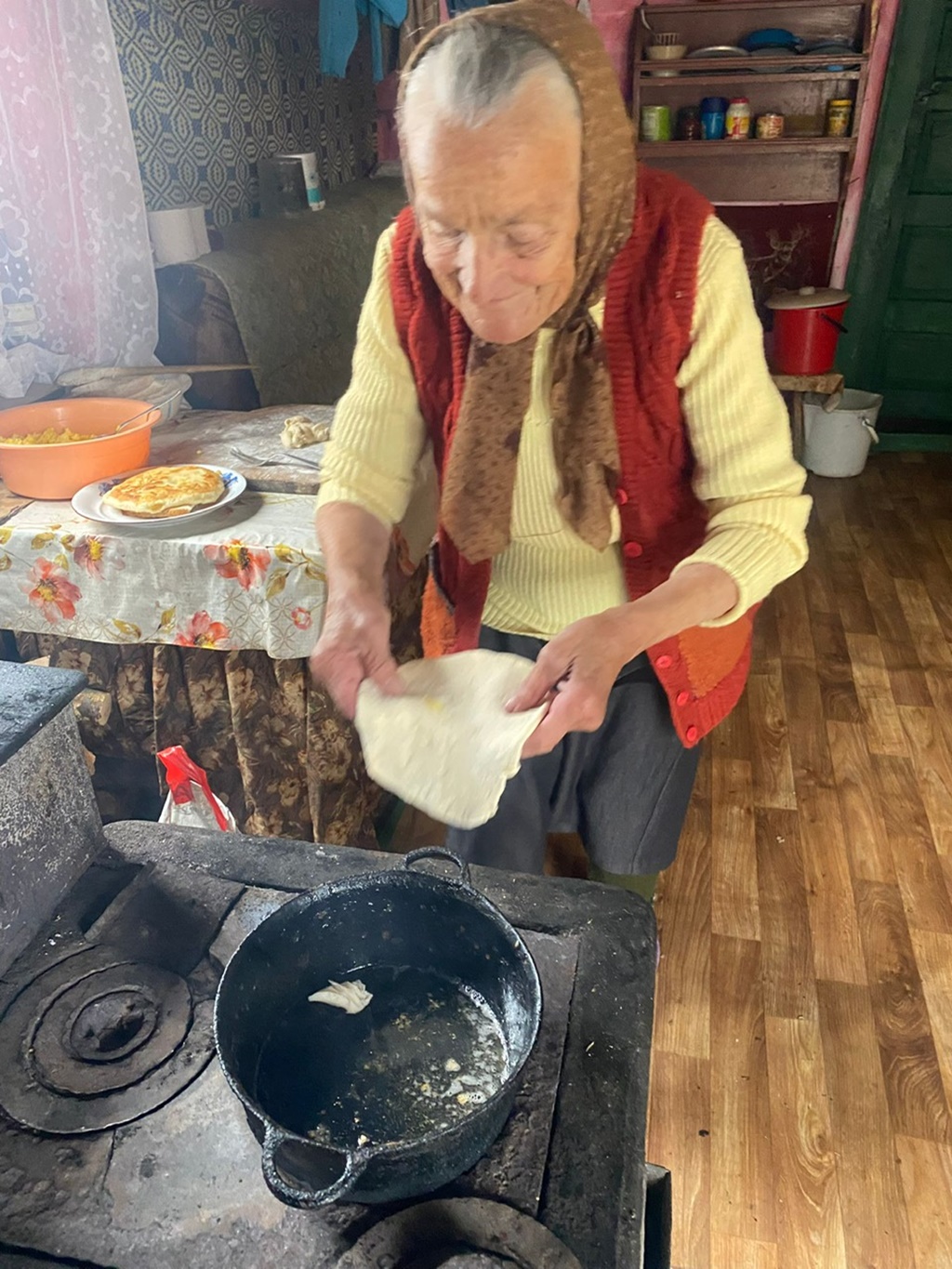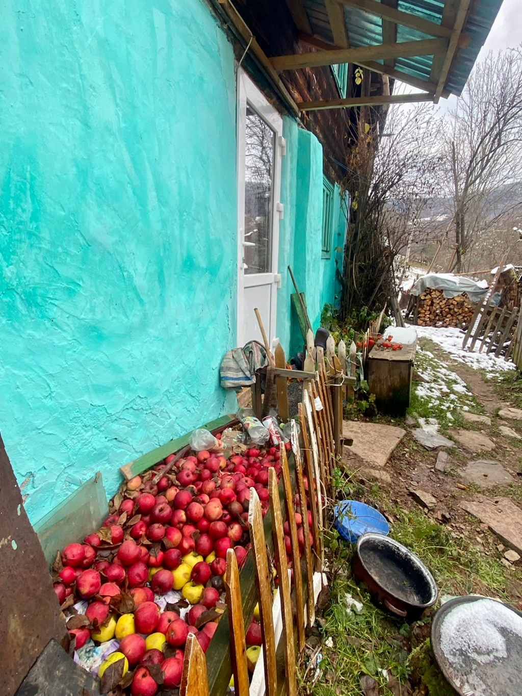Pe tanti Aurelia, echipa ”Din suflet pentru Apuseni” a mai întâlnit-o și anii trecuți și a a ajutat-o să își renoveze puțin casa: cu o mână de var și un pic de vopsea i-au izolat și apoi zugrăvit casa, i-au schimbat soba veche ce scotea doar fum și ”mânca” lemne dar nu mai dădea deloc de căldură și i-au reparat puțin mobila, așa că nu am putut pleca de la tanti a noastră fără să stăm măcar un pic de povești până ne-a făcut câteva plăcinte și ne-am îndulcit (e drept, doar unii dintre noi 😉 ) cu un păhărel de afinată.
