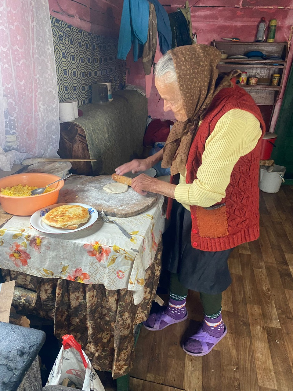 Tanti Iustina (73 de ani) tare se teme de zăpada ce stă să vină, că nu o mai poate curăța singură, noroc cu vecinii. Și lemne în casă ei îi aduc. De 18 ani e văduvă. Din fericire, fata ei locuiește cu ea în sat, așa că o mai ajută cu una, cu alta, și o sună mereu, că tanti are cu ea telefonul mobil. 🙂