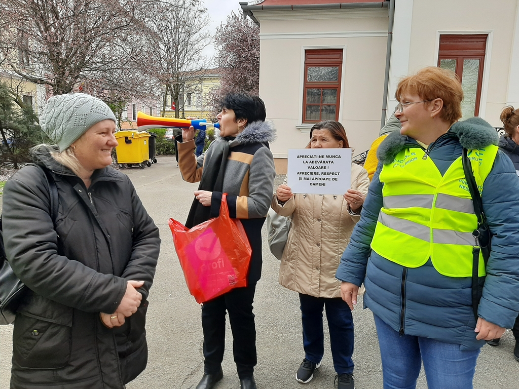 Ei au afișat mesaje, precum: „Vrem salarii decente”, „Avem și noi dreptul la sporuri” sau „Respect pentru noi, cei care avem grijă de copiii dvs”.