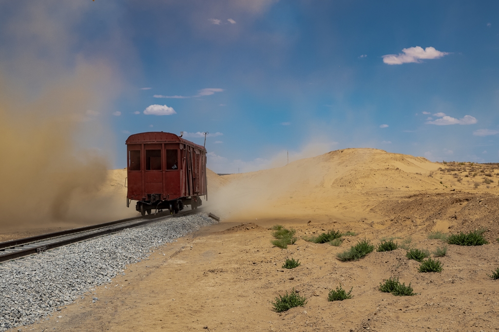 Trenul expres care traverseaza Drumul Mătăsii ajunge la marginea deșertului Kîzîlkum, al 16-lea cel mai mare deșert din lume. Numele său înseamnă Nisip Roșu în limbile turcice. Deșertul enorm se intinde prin Turkmenistan, Uzbekistan și Kazahstan. Și nu doar deșert. Expresul traversează și cel mai mare râu din Uzbekistan, Amu Darya.