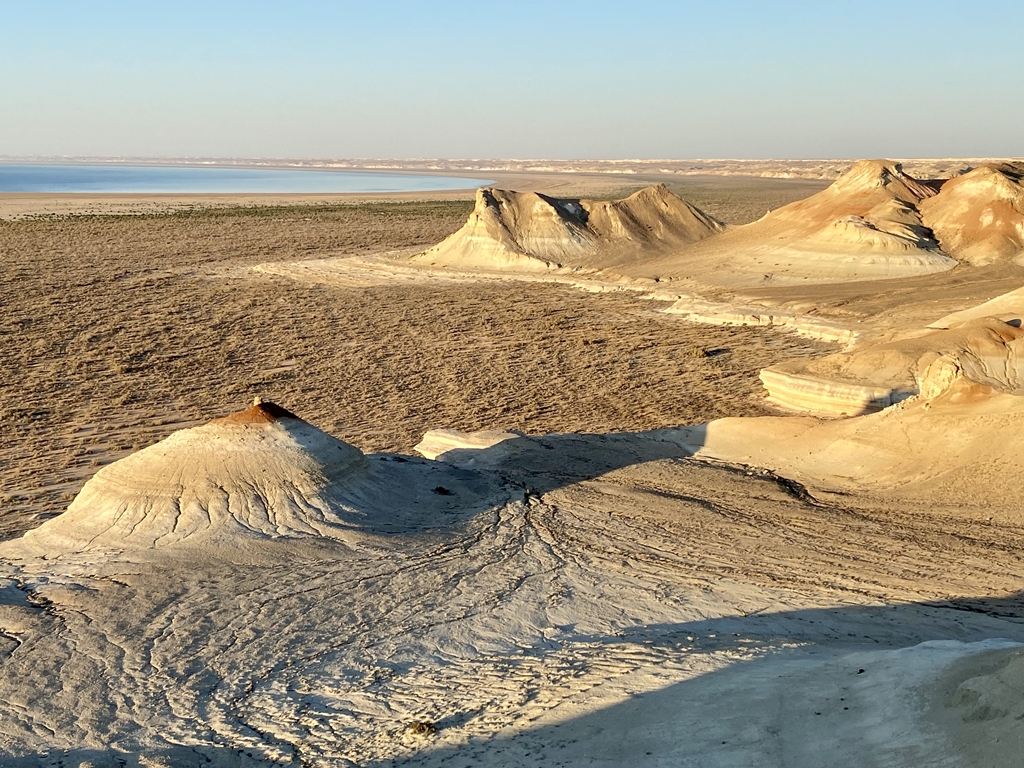 Acum mă aflu în Kazahstan pentru a continua acest proiect și pe partea kazahă, ceea ce a mai rămas din Lacul Aral. Tocmai am terminat o mică aventură de o săptămână în zona Mangystau. Momentan sunt într-un oraș pe nume Aktau, în partea nord-estică a Mării Caspice. M-am întors după cinci zile în deșert. Un paradis pentru geografi, aventurieri și pentru cei iubitori de fosile și de rămășițe ale istoriei geologice . Provincia Mangystau este plină de surprize pentru cei cărora le plac spațiile deschise și peisajul de stepă. Din păcate infrastructura turistică nu este dezvoltată în zonă. Dacă-n Uzbekistan, vecinii din sud, vorbeam un pic mai elogios de trenuri, hoteluri ș.a.m.d. aici, după ce ieșim din Aktau, infrastructura este zero. Există anumite camping-uri de iurte făcute pentru turiști, dar condițiile sunt foarte precare. Dacă cineva dorește să iasă din zona de confort și își asumă aceste nopți în iurte sau în deșert, va fi cu siguranță răsplătit cu peisaje unice. Din când în când ne-am mai întâlnit cu cate un grup de turisti, dar foarte rar. Aktau este un oraș fondat nu de mult, undeva pe la mijlocul secolului al XX-lea, în special ca nod pentru exploatările de petrol și gaze din zonă. Acum, din ce se observă, Kazahstanul pune mult accent pe dezvoltarea turismului. Și da, au toate argumentele să o facă. Există conexiune foarte bună spre Istanbul. (Cristian Flueraru)