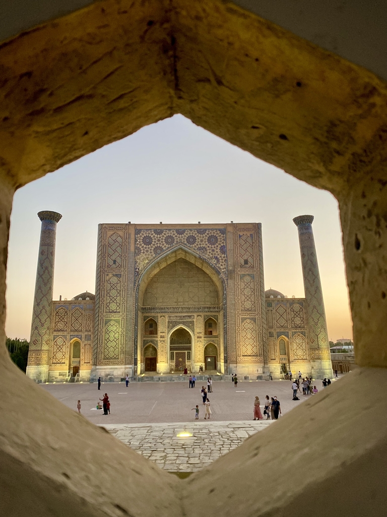 Trebuie spus că actualele constructii nu sunt originale. Cele mai multe dintre ele au fost dărâmate în timpul invaziilor mongole. Secolul trecut, pe măsură ce națiunea uzbekcă a început să se cristalizeze, presupun că au dorit să aducă la viață aceste elemente istorice și le-au reconstruit, punând accent foarte mare pe originalitate. Fără a cunoaste aceste amănunte, chiar ai crede că atunci când te afli in Samarkand ești în fața monumentelor originale. Recomand oricui o vizită în această zonă. Se ajunge destul de ușor via Istanbul, iar din Istanbul se poate alege: fie se zboară la Tașhkent, fie se zboară la Samarkand sau la Nukus. E vorba de 3-4 ore din Istanbul, o călătorie destul de acceptabilă cu avionul. În partea aceasta, să zicem pe vechiul Drum al Mătăsii, infrastructura este mai dezvoltată, există tren de mare viteză, sunt hoteluri pentru toate buzunarele și preferințele. De la hosteluri de 5-10 euro până la hoteluri butic de 100 euro. Se mănâncă bine, iar oamenii sunt fascinanți. Foarte primitori, foarte calzi. O țară foarte sigură. Recomand oricui. (Cristian Flueraru)