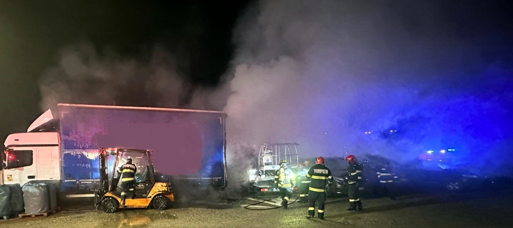 Sosiți în curtea service-ului, pompierii au constatat că flăcările cuprinseseră în întregime un autoturism și parțial o camionetă, existând un risc ridicat de extindere la celelalte autovehicule din apropiere și la o clădire.