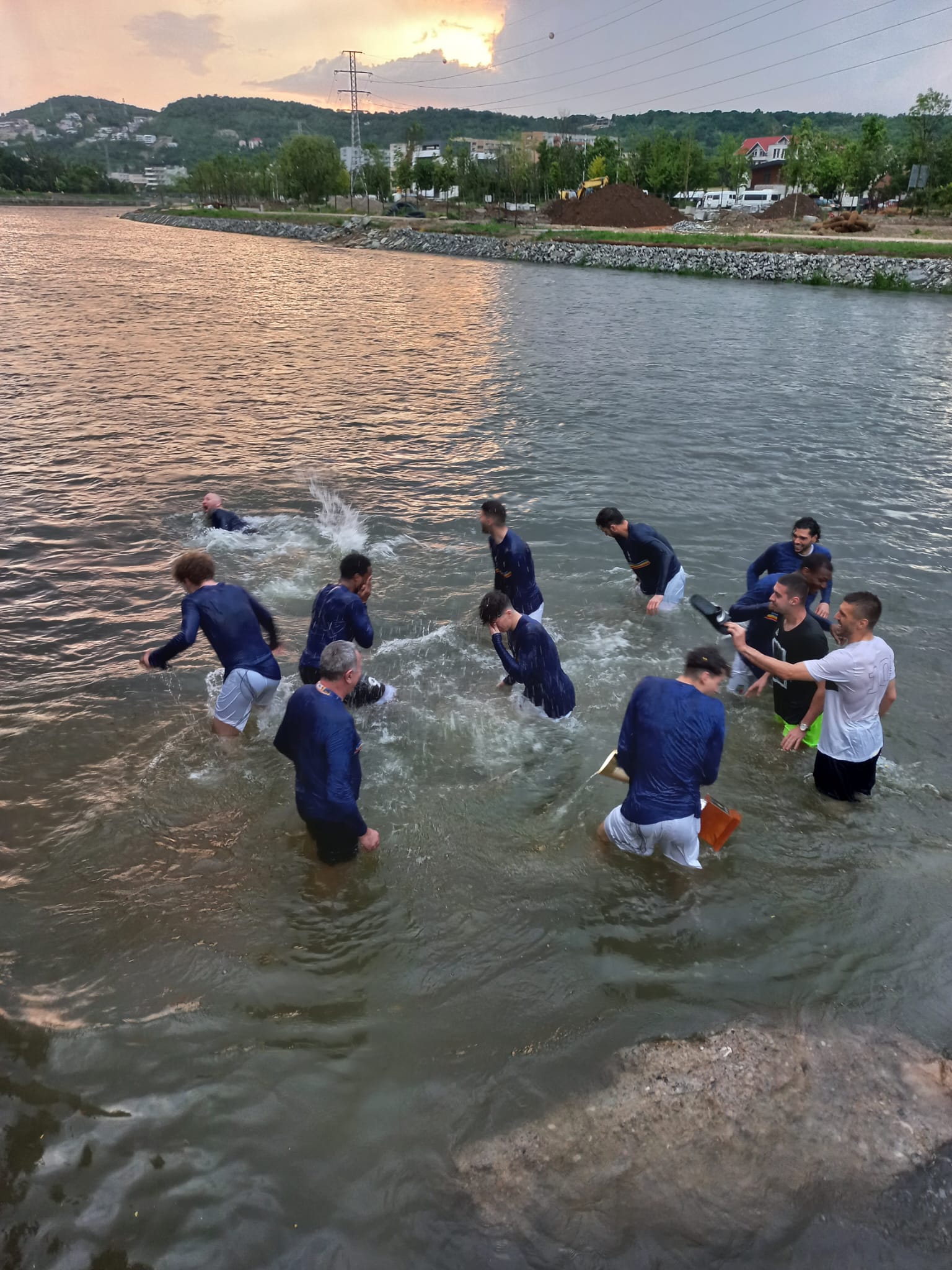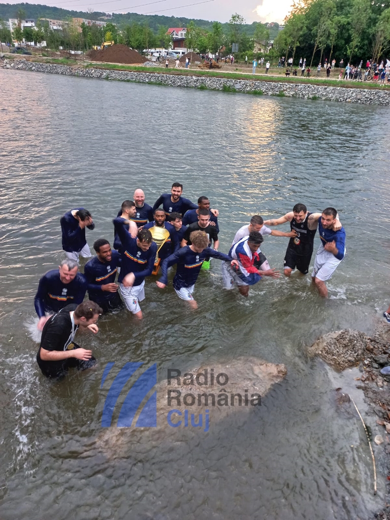 La finalul meciului, în aplauzele suporterilor, baschetbaliștii clujeni au făcut tradiționala baie în Someș!