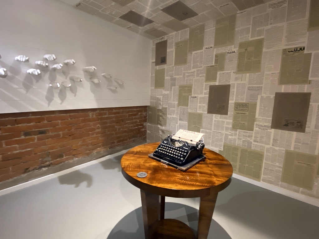 Evelin Ciocan: Avem nişte coduri QR prin care vizitatorii se pot conecta la ghidul audio, dar avem şi 8 tablete în caz că cineva nu se poate conecta. Avem 3 ghizi audio: Paul, David şi Julia. Paul a fost într-o tabără de muncă, Julia a fost singura salvată cu trenul Kastner şi David a fost deportat la Auschwitz. Ei au fost persoane reale, au făcut parte dintr-o familie de evrei din Cluj (familia Lustig) şi îşi spun poveştile de viaţă prin 21 de exponate. Ceea ce vezi în muzeu are rolul de a susţine vizual poveştile lor. Sunt fie obiecte ce ţin de cultură şi tradiţie evreiască, fie obiecte personale, documente, cărţi, scrisori. Mie-mi place foarte mult povestea Juliei: a călătorit cu copiii ei şi mi se pare că a fost o femeie foarte puternică, cumva m-a inspirat.