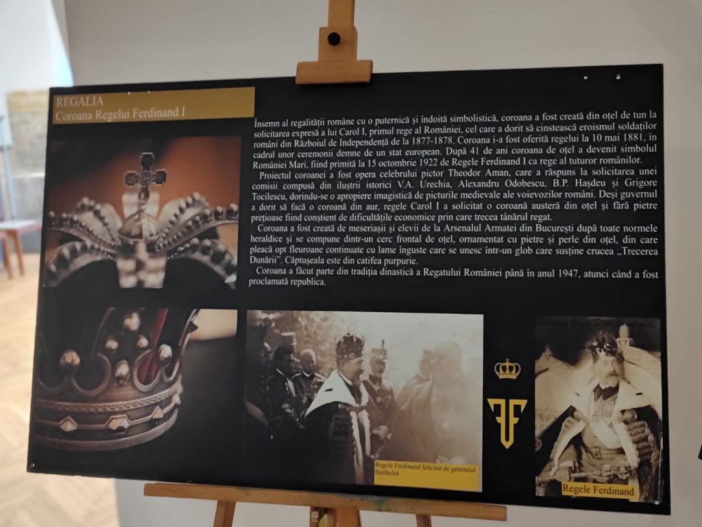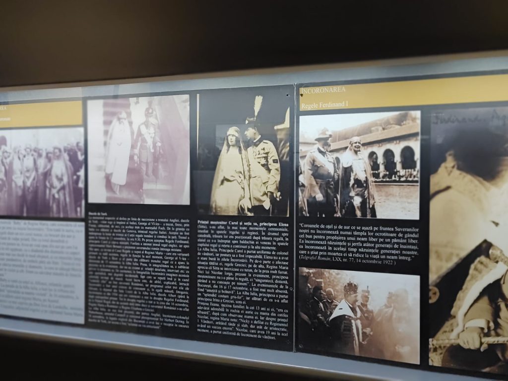 Cu ocazia zilei de 1 decembrie avem pregătită pentru vizitatorii sigheteni o expoziție dedicată încoronării Regelui Ferdinand și Reginei Maria încoronați la Alba Iulia în 15 octombrie 1922. Expoziția este realizată de Muzeul Unirii din Alba Iulia, instituție cu care avem o colaborare deosebită. Într-adevăr, ei au realizat expoziția asta anul trecut. La noi a venit cu un an întârziere, dar considerăm că este extrem de interesantă pentru pentru publicul sighetean. Expoziția constă în 24 de panouri, text și fotografii, prezentând povestea acelei zile, felul în care a fost organizată încoronarea, cum a fost construită Catedrala Regalia celor celor doi suverani, coroanele, ș.a.m.d. Invităm sighetenii să descopere această expoziție.