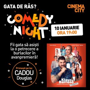 Klaus & Barroso, comedia scrisă de Grupa B (Adrian Nicolae, Cosmin „Micutzu” Nedelcu și Bogdan Theodor Olteanu), invită spectatorii la proiecții speciale în prezența echipei în 13 orașe.