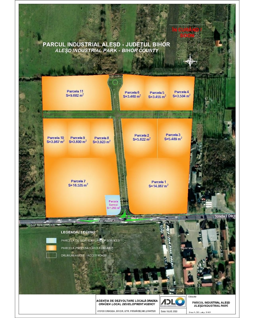 Terenul pe care se va dezvolta infrastructura, situat la ieșirea din Aleșd spre Oradea, după benzinăria OMV, a fost pus la dispoziție de către Primăria Aleșd.