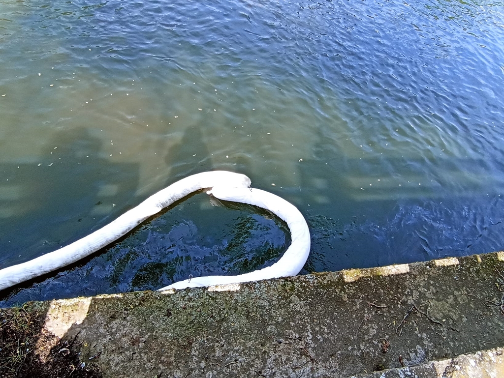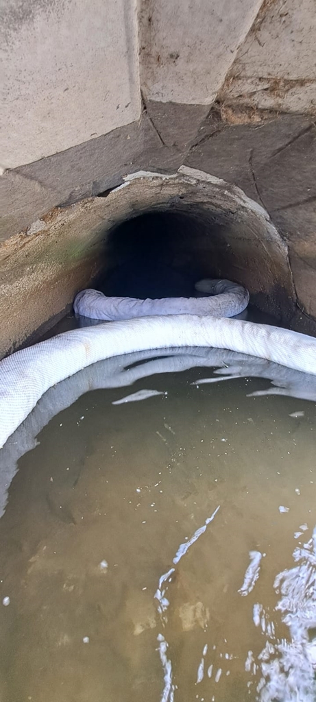 La această oră, personalul Sistemului de Gospodărire a Apelor Cluj intervine cu baraje absorbante pentru limitarea efectelor poluării.