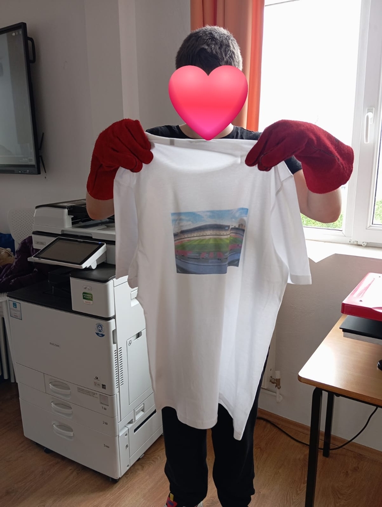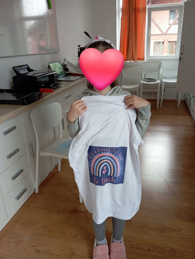 Asta mie-mi spune că poate pe viitor această fetiţă va lucra într-un atelier de personalizare. Avem alţi tineri care fac căni sau tricouri, am reuşit să achiziţionăm echipamente şi practic acum învăţăm aceste lucruri împreună cu ei.