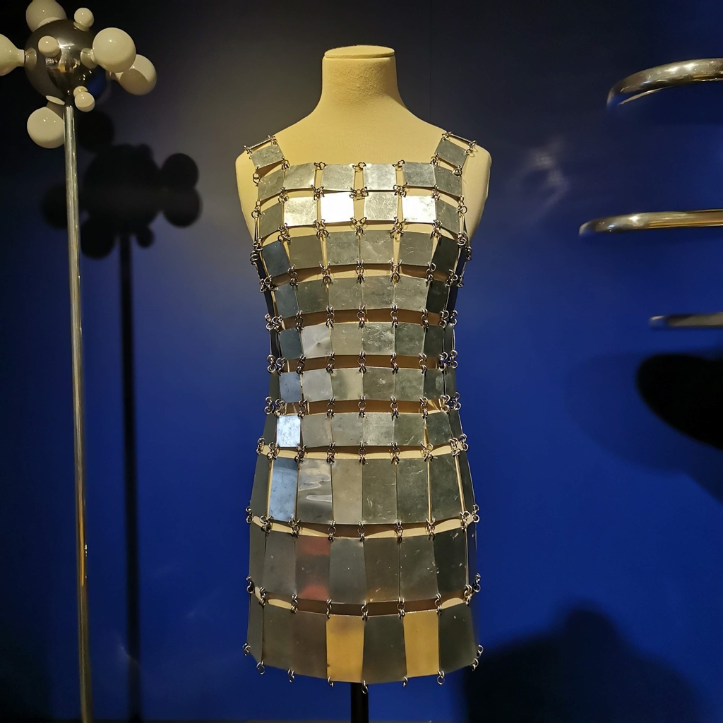 M-a amuzat astfel să văd două dintre costumele futuriste realizate pentru filmul din 1966 “Who are you Polly Magoo?” în regia lui William Klein și creațiile din folie de aluminiu ale fraților Bernard și Francois Baschet, designeri ai epocii, foarte preocupați de acustica unor anumite materiale.