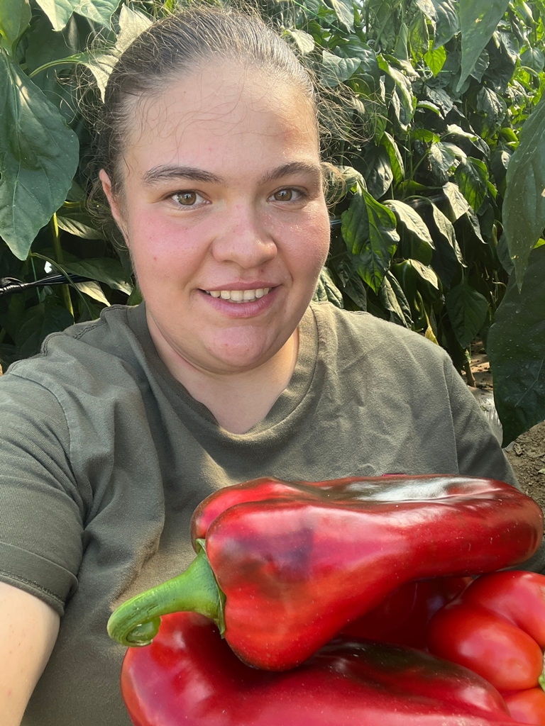 Muncește cot la cot cu părinții săi în ferma ce cuprinde 20 arii de spații protejate – solarii în care sunt cultivate tomate, castraveți, ardei gras, ardei iute, ardei kapia , gogoșar, fasole, dovlecel și țelină. De copil, Gabriela s-a implicat în afacerea demarată de tatăl ei. Povestea unei tinere ambițioase începe așa: