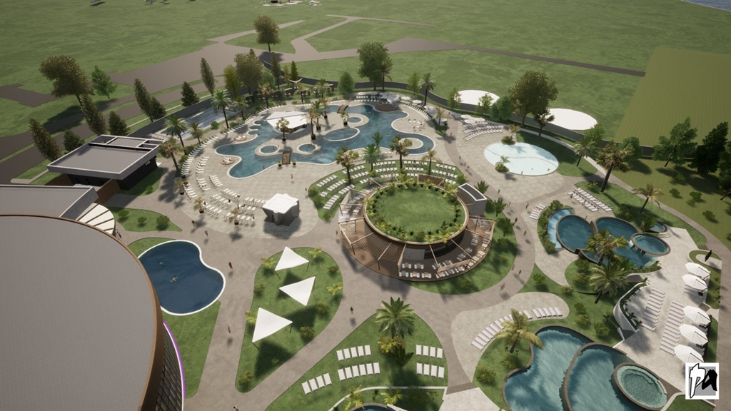 • Un centru SPA amplasat în clădirea principală (subsol + parter + etaj parțial), cu o suprafață desfășurată de 8.853 mp, care va cuprinde un ansamblu de bazine interioare (peste 500 mp de luciu de apă), o zonă de spa, vestiare, spații tehnice, o sală de fitness, zone de alimentație publică și birouri.
