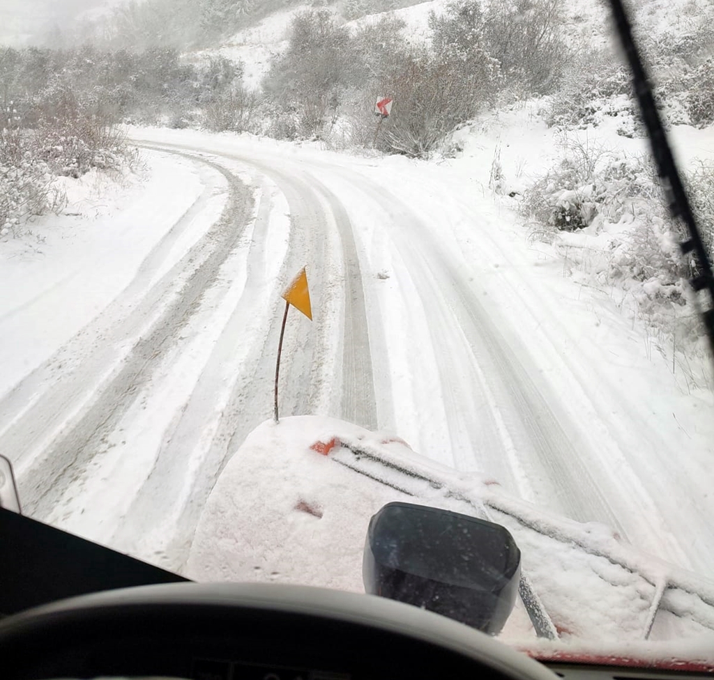 • DJ 193 + 108A: zăpadă frământată, se intervine cu o autospecială.