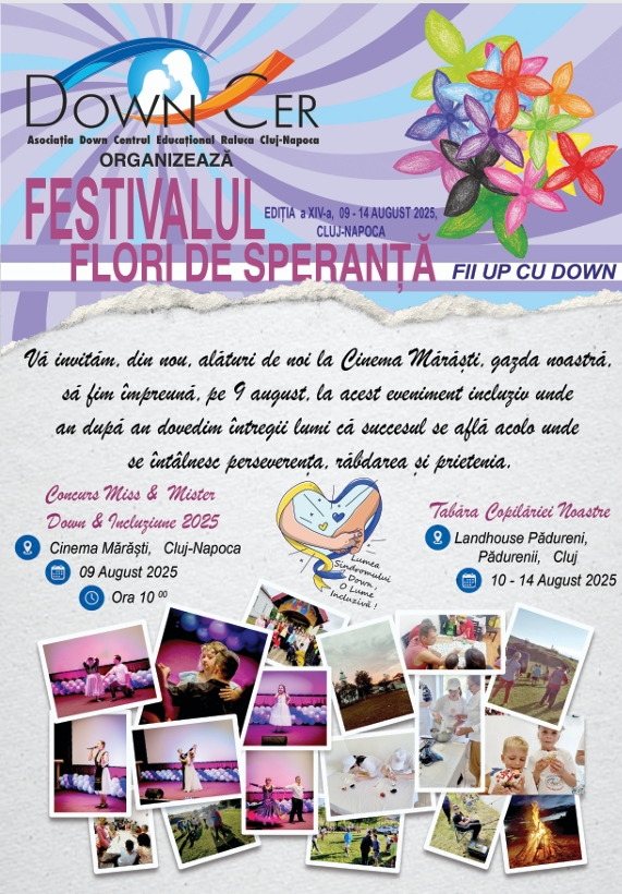 Festivalul „Flori de Speranță” organizat de Asociația Down – Centrul Educațional Raluca din Cluj-Napoca revine cu a 14-a ediție.