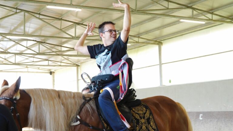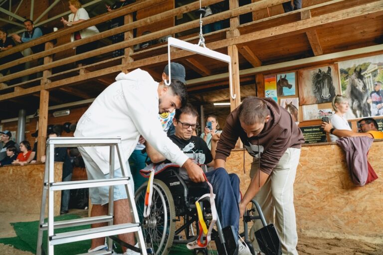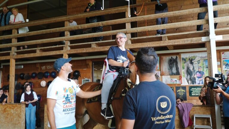 ”Am făcut un scripete special pentru ca persoanele cu dizabilități să fie luate elegant și sigur din scaun și așezate pe cal și apoi să călărească folosind acea șa adaptată. Ați văzut că pot să stea chiar și fără să se țină, să călărească independent. Cu toții, ei asta își doresc: să facă sport în mod independent. Și noi acest lucru l-am reușit azi, prin acea șa adaptată.
