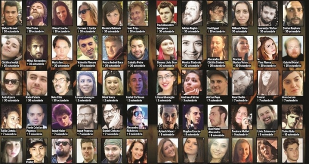 Un număr de 64 de persoane şi-au pierdut viaţa în urma incendiului din 30 octombrie 2015 de la clubul Colectiv din Capitală.