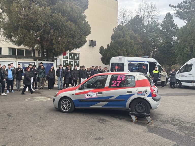 După o scurtă prezentare teoretică în care elevii și invitații au putut face cunoștință cu noțiuni de conducere defensivă adresate în special tinerilor șoferi, aceștia au putut experimenta simulatorul de distragere a atenției, simulatorul de impact frontal, simulatorul de răsturnare, în condiṭii de maximă siguranṭă.