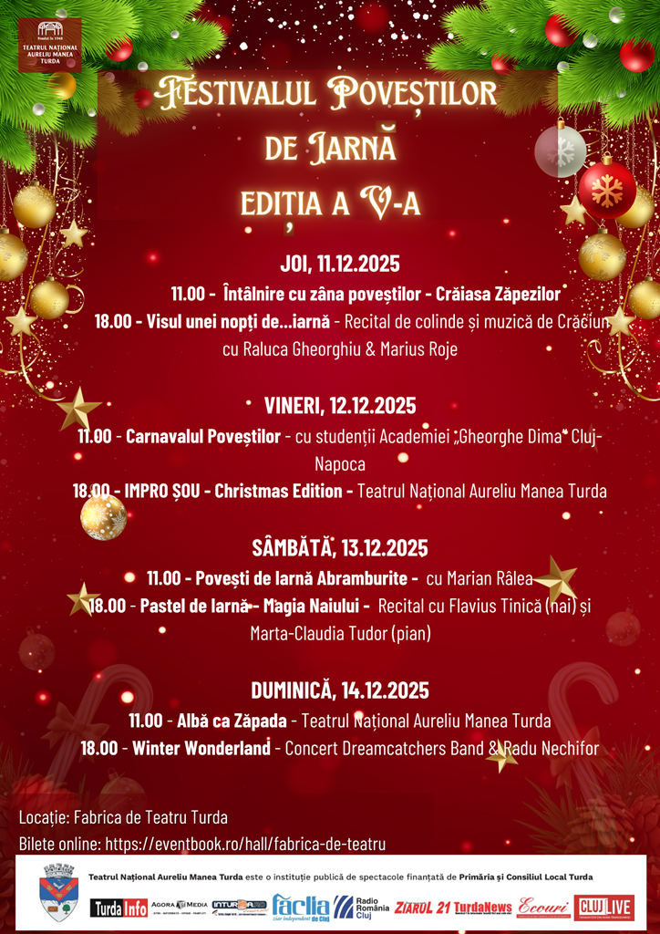 Și anul acesta, în perioada 11–14 decembrie, Fabrica de Teatru devine locul unde poveștile prind viață, iar magia se simte în fiecare colțișor: începe Festivalul Poveștilor de Iarnă – Ediția a V-a.
