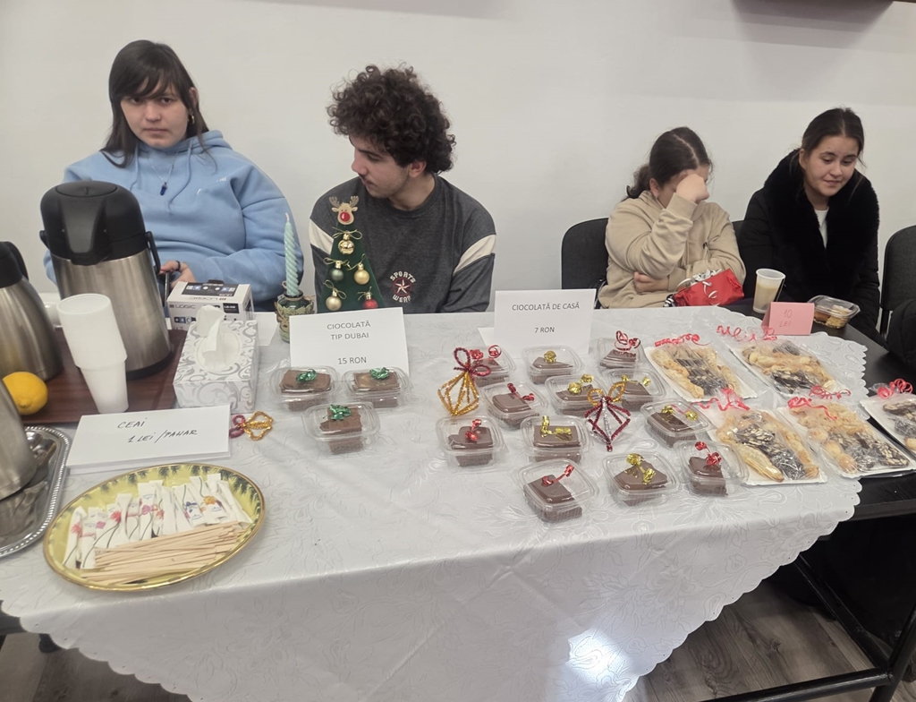 S-a deschis Târgul de Crăciun al Şcolii Profesionale Speciale Samus. Am descoperit acolo un trenuleț din materiale reciclate, flori și ornamente din tablă realizate de elevii de la tinichigerie, dar și… ciocolată. Muuultă ciocolată.