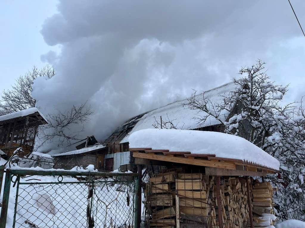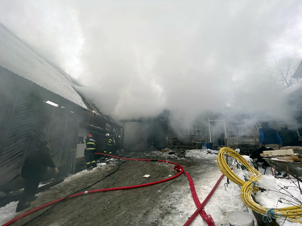Incendiu de proporții într-un sat de munte – intervenția pompierilor, dificilă