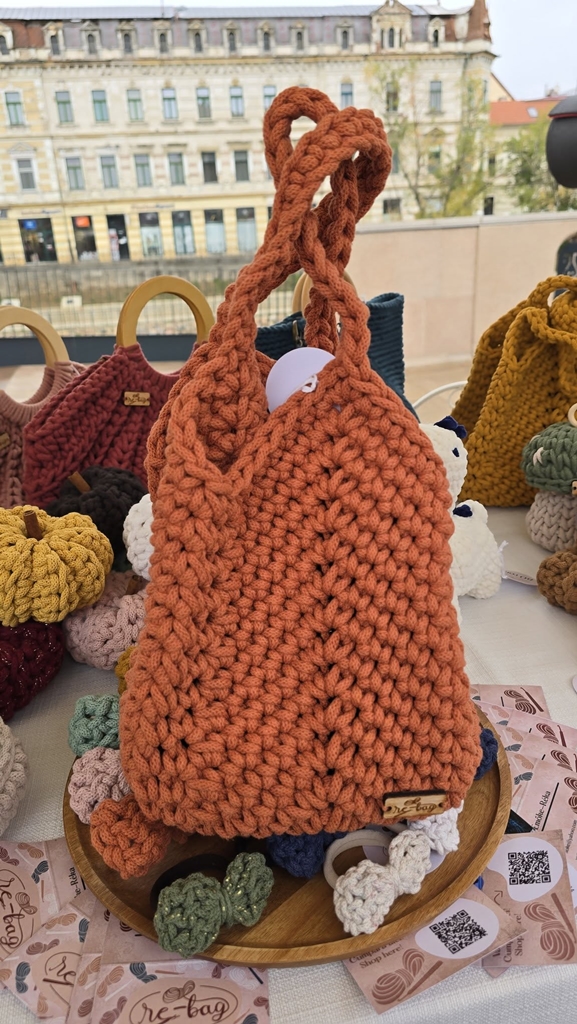 În Oradea, o farmacistă își găsește liniștea printre fire groase și un ac de croșetat. O cheamă Benedek Emőke, are 44 de ani și, după programul de la farmacie, creează genți și poșete hand made.