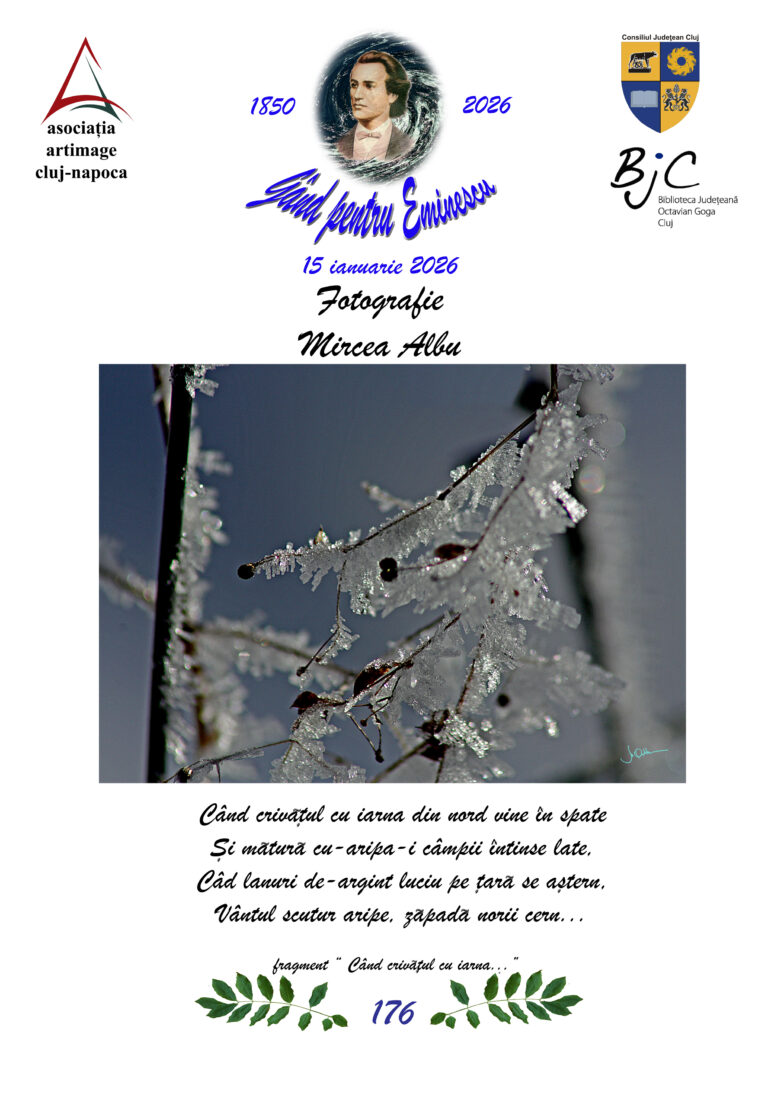 Prin lumină, natură și detalii încărcate de sens, fotografiile lui Mircea Albu expuse în foaierul Bibliotecii Județene ”Octavian Goga”, în perioada 12-19 ianuarie, în cadrul expoziției „Gând pentru Eminescu”, sunt un omagiu adus operei și spiritului eminescian cu prilejul Zilei Culturii Naționale.