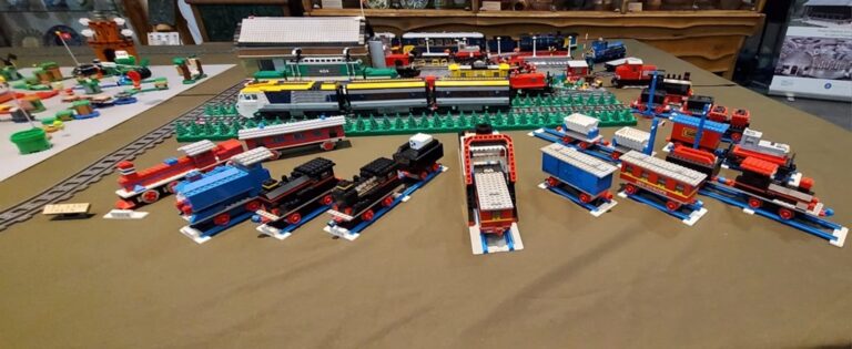Primul tren Lego apărut în anul 1964 și prima locomotivă motorizată pot fi văzute în cadrul expoziției.