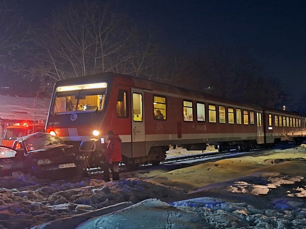 Accident feroviar dramatic luni, 19 ianuarie, în Bistrița, pe strada Ioan Slavici. Un tânăr de 25 de ani a fost la un pas de moarte după ce mașina pe care o conducea a fost lovită în plin de trenul personal care circula pe ruta Bistrița-Prundu Bârgăului.