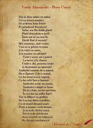 Dacă în lumea satului HORA unea oamenii, adunându-i roată, într-un simbol al perfecţiunii şi al întregului, ei bine, ‘Hora Unirii’ a lui Alecsandri adună toată românimea într-un cerc. Prinderea de mână a celor ce se unesc în acest dans transmite ideea de putere multiplicată, în funcţie de participanţii la actul de bucurie că teritoriul ţării noastre se întregeşte.