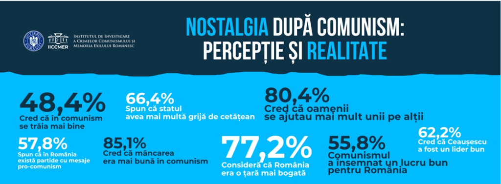 ”Ne aflăm, din păcate, într-un moment în care nostalgia față de regimul comunist nu mai reprezintă doar o opinie sau o vulnerabilitate culturală. Este o problemă de securitate națională”, afirma Daniel Șandru, președinte executiv al Institutului de Investigare a Crimelor Comunismului și Memoria Exilului Românesc, în urma sondajului de opinie realizat anul trecut, care relevă că 66,2% dintre respondenți cred că Nicolae Ceaușescu a fost un lider bun pentru țara noastră. Și mai grav este că mulți tineri consideră că, în acea perioadă, era mai bine decât acum.
