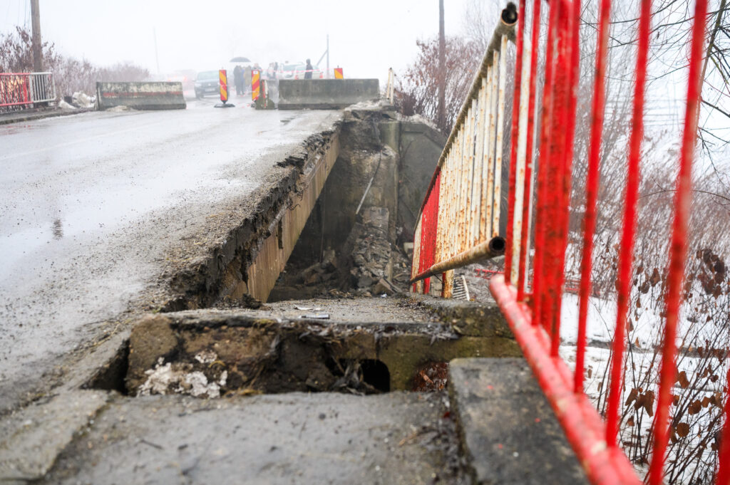 Specialiști în domeniu fac măsurători în zonă și caută o soluție pentru ca podul să fie deschis circulației cât mai curând, măcar pentru traficul ușor și cel pietonal.