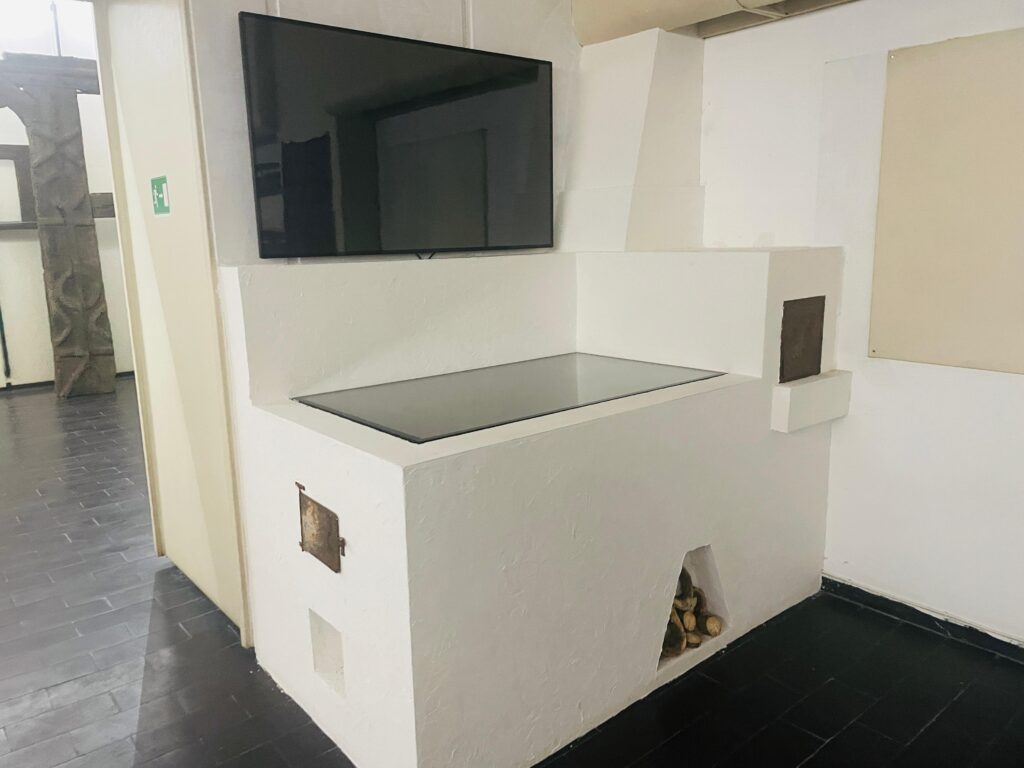 La exterior, soba păstrează aspectul autentic, însă în loc de plită și focar este dotată cu un ecran tactil, care permite alegerea rețetelor și parcurgerea pașilor de gătire. Astfel, vizitatorii pot „găti” virtual preparate tradiționale, iar dacă rețeta le place, o pot încerca ulterior și acasă.