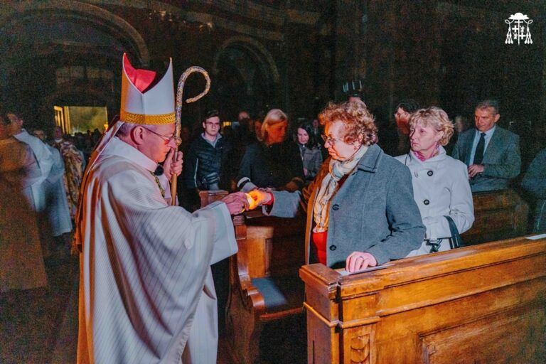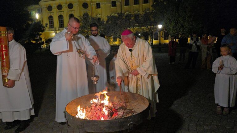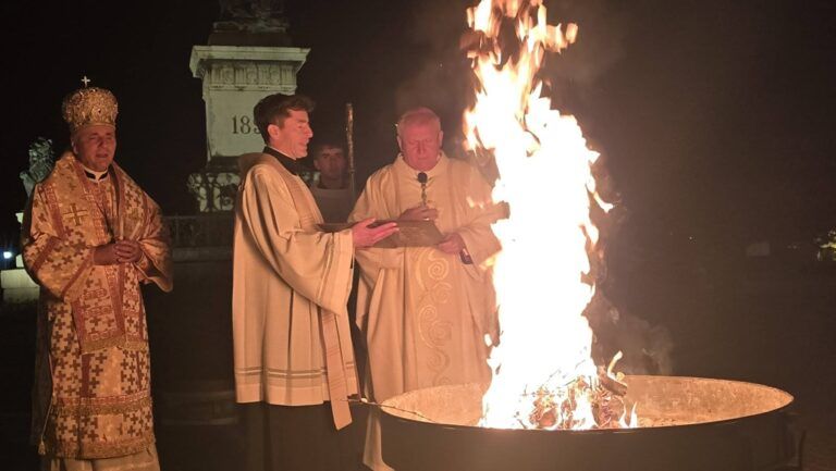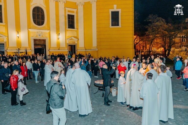 „Cristos a înviat! – Vigilia pascală, celebrată de trei episcopi la catedrala romano-catolică din Oradea