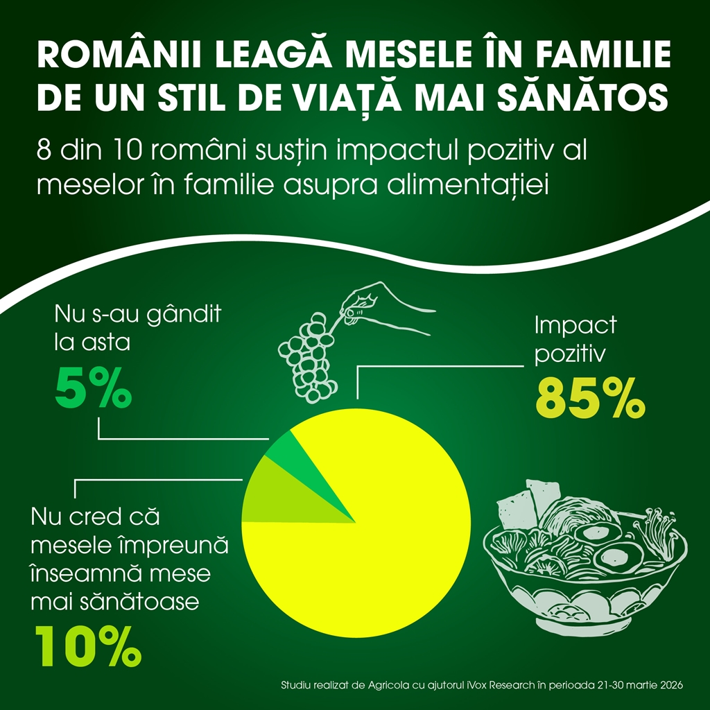 „Studiul confirmă un lucru important, și anume că tradiția mesei luate în familie rămâne mai puternică decât ritmul impus de viața modernă. Chiar dacă programele diferite, oboseala și presiunea cotidiană fac tot mai greu de păstrat acest obicei, românii continuă să îl asocieze cu o alimentație mai bună și cu timp de calitate petrecut alături de cei dragi.