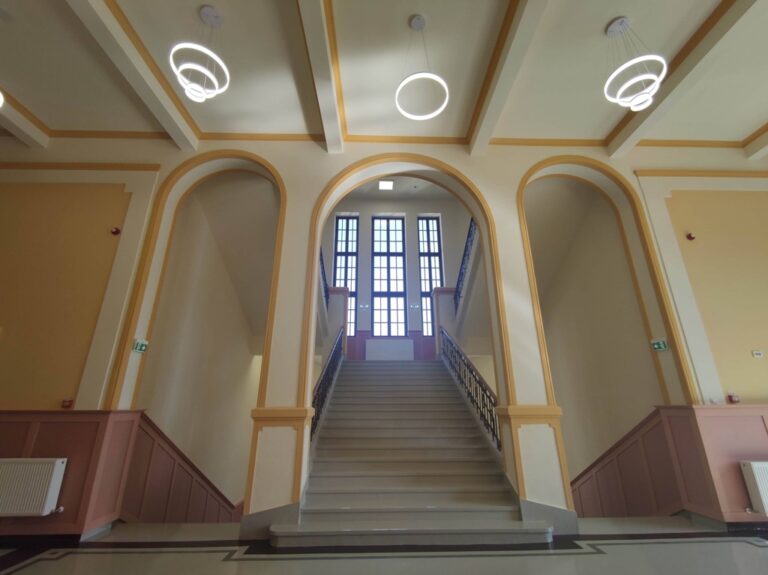 Reabilitarea clădirii centenare a fost un test de forță pentru constructori: pe lângă consolidarea și dotarea modernă a celor 38 de clase, proiectul a vizat și infrastructura adiacentă. Vorbim despre peste 2.200 de metri pătrați de trotuare refăcute și crearea unui nou parc de recreere.