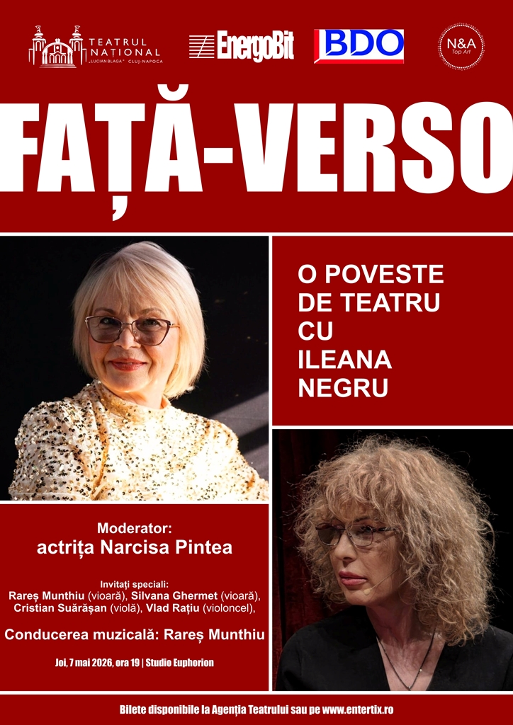În Studioul Euphorion, va avea loc a noua ediție a spectacolului-dialog Față-Verso. O poveste de teatru, un eveniment plin de surprize, ce o va avea în centru pe îndrăgita actriță Ileana Negru, care a slujit cu devotament scena clujeană timp de peste patru decenii.