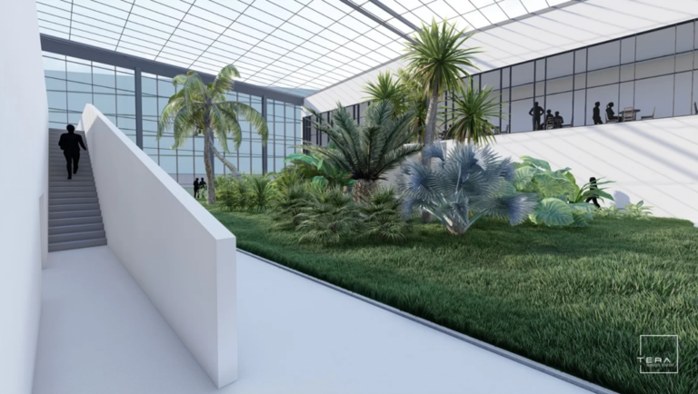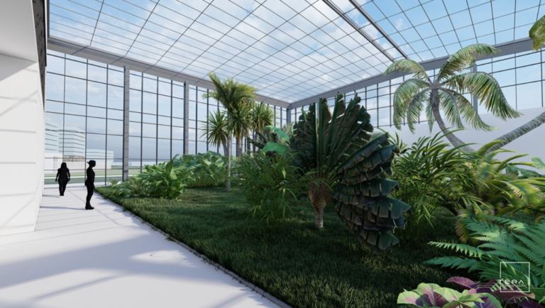 De asemenea, vor fi plantați arbori din specii locale, adaptați climatului din zonă. Sera va fi încălzită cu apă geotermală, iar acoperișul verde va contribui la absorbția apei pluviale, la purificarea aerului și la reducerea temperaturii ambientale.
