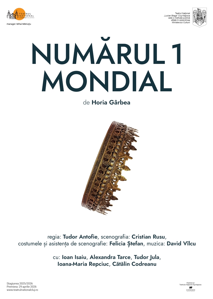 Teatrul Național „Lucian Blaga” din Cluj-Napoca, prezintă, la Studioul Euphorion, premiera Numărul 1 mondial de Horia Gârbea, în regia lui Tudor Antofie, un spectacol care oglindește realitatea distorsionată a celor ce conduc lumea, adesea inconștienți de existența propriilor limite.